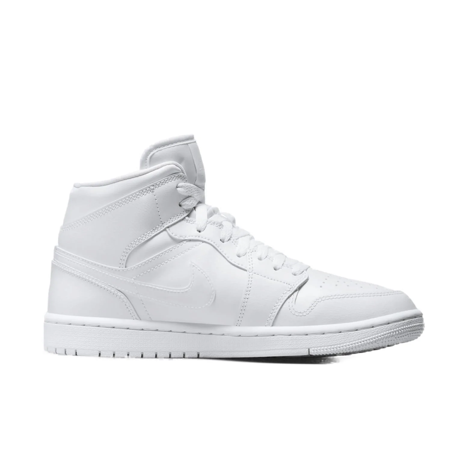 When it comes to comfort and durability, the Air Jordan 1 Mid Triple White W does not disappoint. The padded collar and cushioned midsole provide exceptional support, making these trainers ideal for all-day wear, whether you're hitting the streets or simply running errands around town. The durable rubber outsole ensures reliable traction on various surfaces, offering stability and confidence with every step.